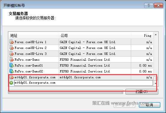 3.福汇fxcm平台也可以,MT4模拟服务器地址:mt4dp01.fxcorporate.com 品名是:USDOLLAR